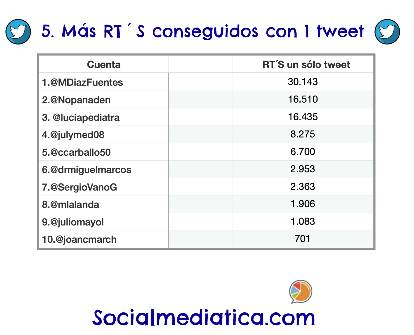 Un año más, para despedir el mes de mayo con la clasificación anual de los perfiles médicos con más seguidores en la red social del pajarito azul. Primero una imagen de los perfiles tuiteros de los TOP 10 médicos en España y posteriormente iré desglosando cada uno de los diez perfiles para que nos permita conocer más datos y como utilizan sus cuentas de Twitter los médicos.