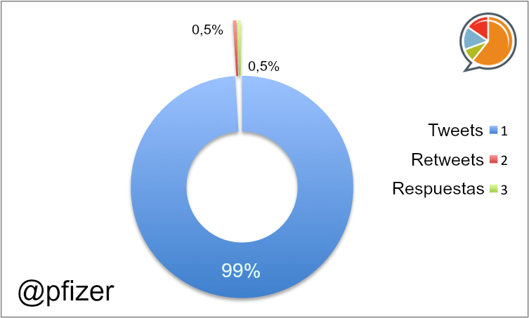- Pfizer, a pesar de haber perdido la primera posición en cuanto a seguidores, mantiene un nivel altísimo en cuanto a favoritos y RT´S , superior al 90%. Además es el perfil más incluido en listas, que es otro indicativo de influencia